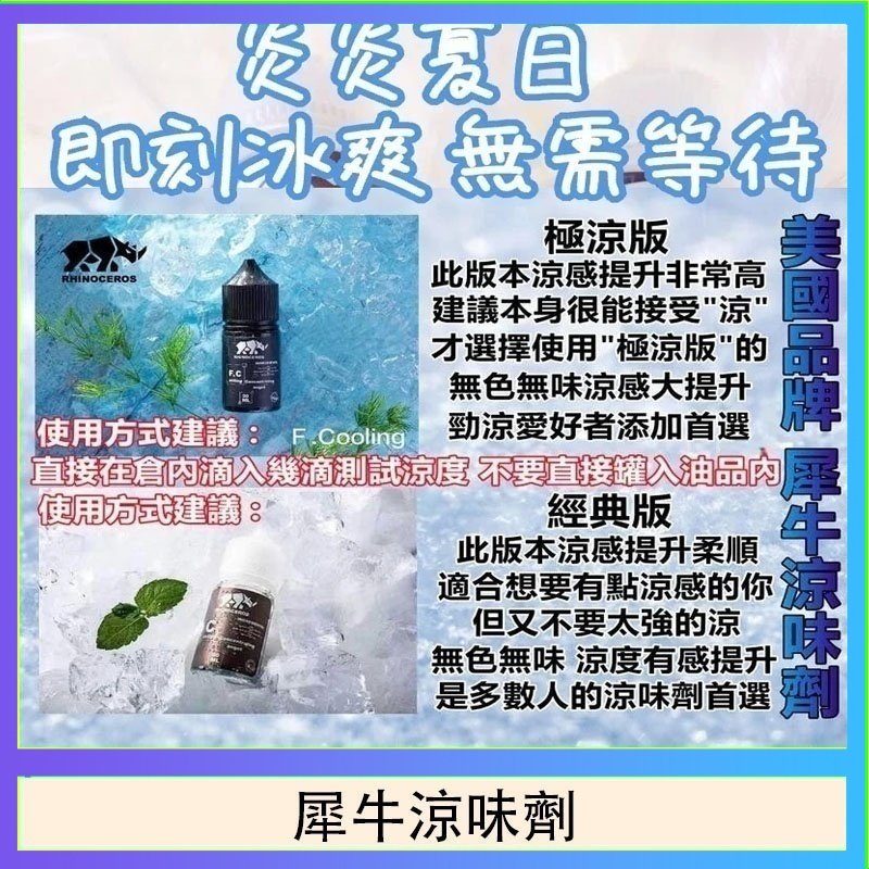美國大廠犀牛涼味劑相信許多涼味口感的愛好者都有試過許多市售的涼味劑