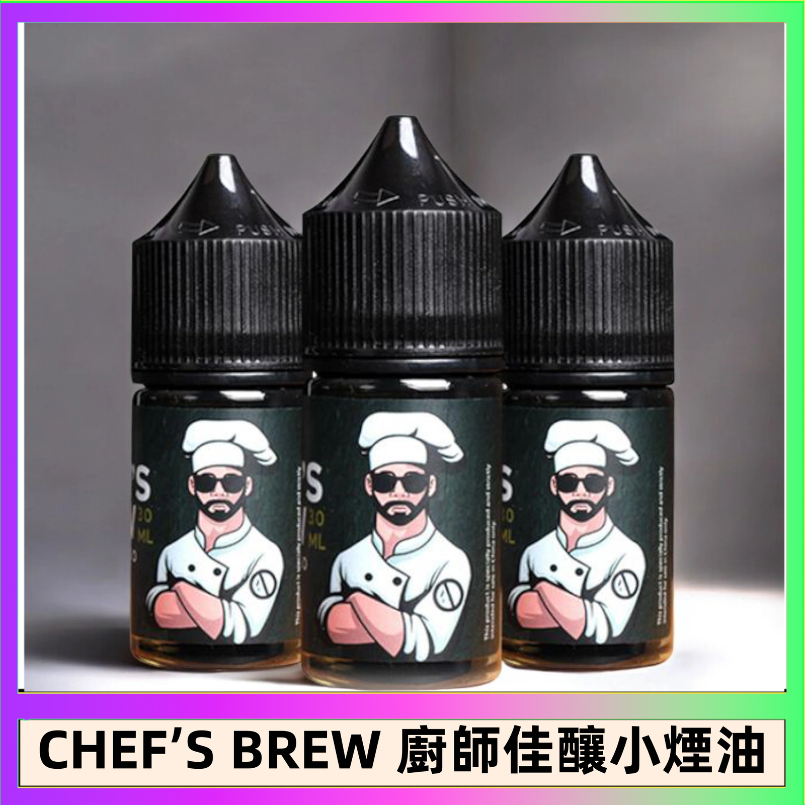 CHEF’S BREW 廚師佳釀是一個美國品牌的電子煙油系列。 這個品牌以其多樣化的口味聞名,包括水果、甜點、飲料和煙草風味等。 其中,常見的口味有「葡萄宇宙」、「咸檸莓莓」、「焦糖椰子」和「芒果聖代」等。